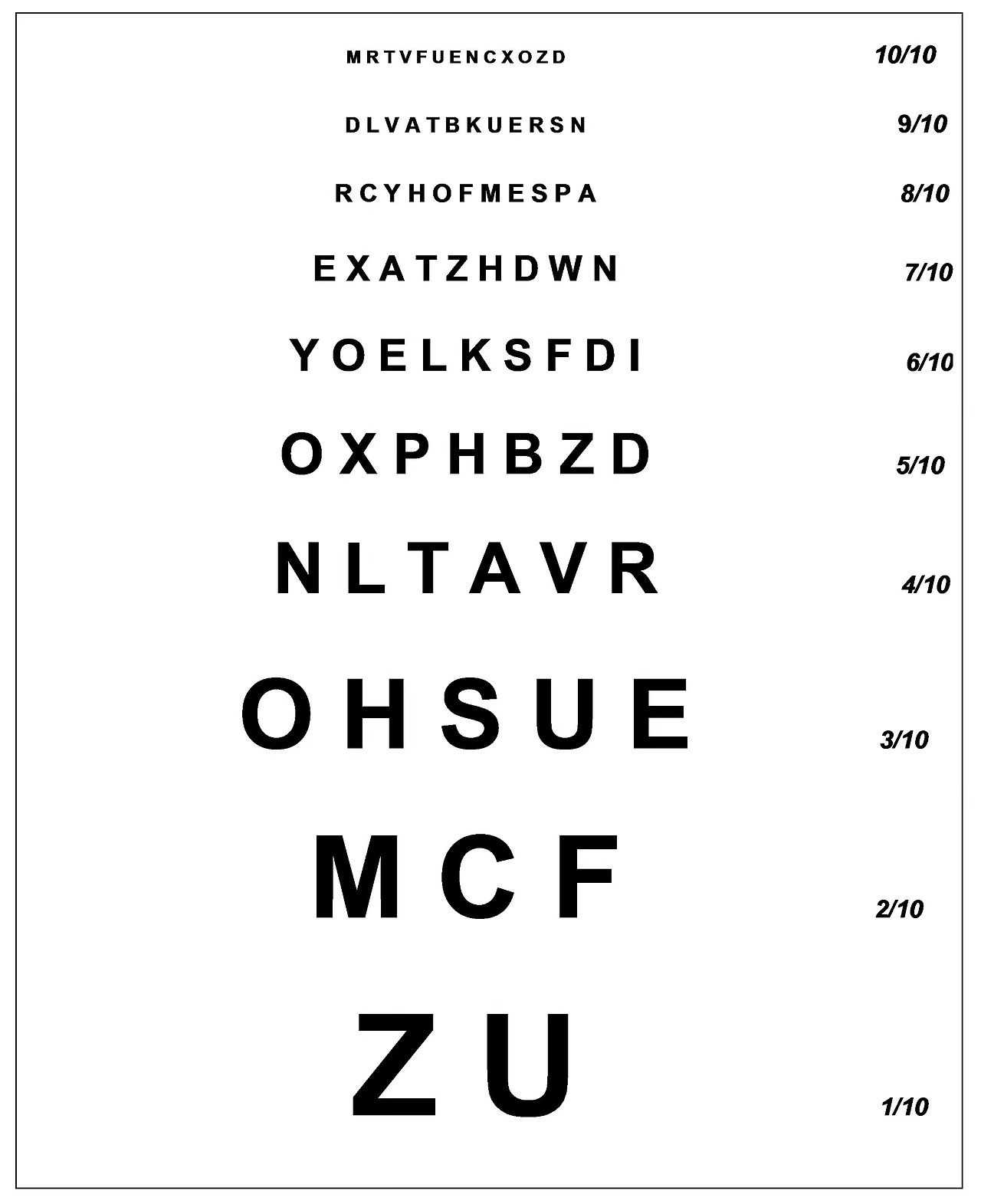 Inventée en 1875, l'échelle Monoyer sert à mesurer l'acuité visuelle. Le nom de son créateur est astucieusement caché : les premières et dernières lettres des neuf premières lignes lues verticalement de bas en haut forment le nom de Ferdinand Monoyer : on lit à gauche, « Monoyer » et « DM » pour Docteur en Médecine, et à droite, « Ferdinand ».